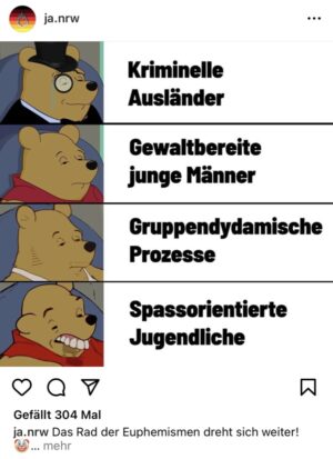 „Seit 2019 sei der Landesverband der Jungen Alternative in Nordrhein-Westfalen ideologisch auf den politischen Kurs des Bundesverbandes der Jungen Alternativen eingeschwenkt, heißt es in der Bewertung des Innenministeriums. Dieser Kurs zeichne sich durch ein völkisch-ethnisches Volksverständnis und Fremdenfeindlichkeit aus. Ebenfalls vertrete die „JA NRW“ Positionen, die die Menschenwürdegarantie verletzten, wie das Ziel, Menschen mit Migrationsbiografie und Muslime auszugrenzen und verächtlich zu machen.