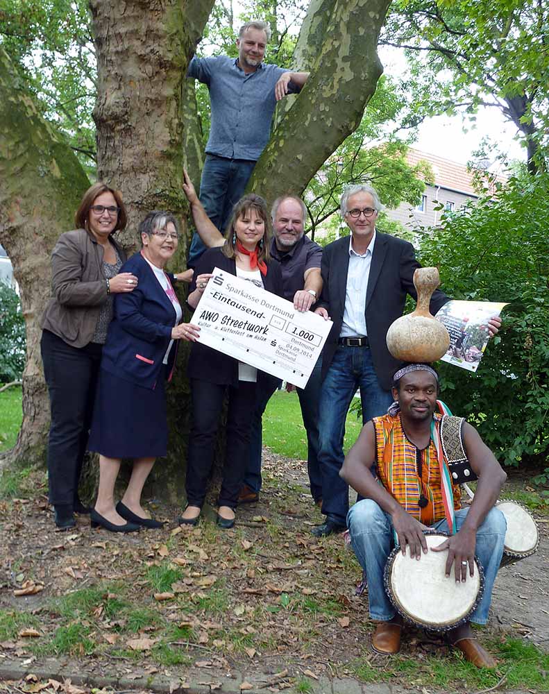 Für Speisen und Getränke hingegen wird ein Unkostenbeitrag verlangt. Um den Jüngsten eine kostenlose Teilnahme zu ermöglichen, brachte Iris Kosumi von der Sparkasse Dortmund einen Scheck über 1000 Euro mit.