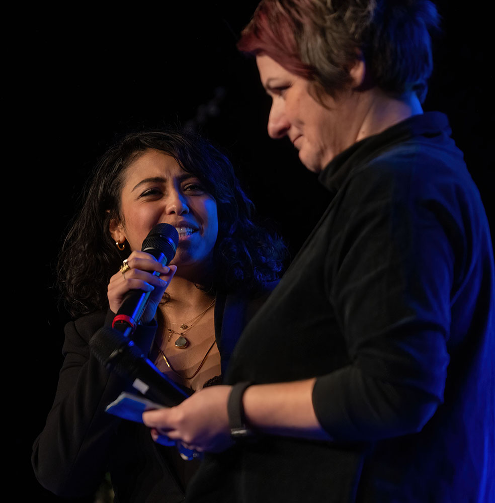 Vor der Engelverleihung, die es seit 2005 gibt, hörte die große Gästeschar einiges Neues. Die Moderatorinnen Aida Demirović-Krebs und Özge Çakırbey kündigten an, dass die Aktivitäten der großen Begegnungsstätte in der Nordstadt wieder auf youtube zu sehen seien und warben um Abonnent:innen sowie auch um neue Mitglieder für den Förderverein des DKH. ___STEADY_PAYWALL___