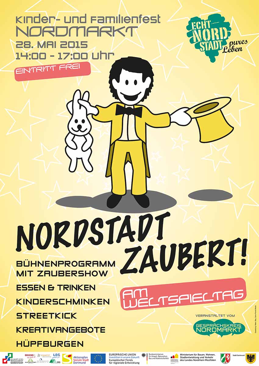Nordstadt zaubertIn diesem Jahr läuft das Kinder- und Familienfest unter dem Motto „Nordstadt zaubert“. Zahlreiche Mitmach- und Kreativgebote rund um das Thema Zauberei warten auf die Kinder des Stadtteils. Das Basteln von Zauberstäben und –kugeln oder das Malen von Zauberbildern sind nur einige der vielfältigen Angebote.