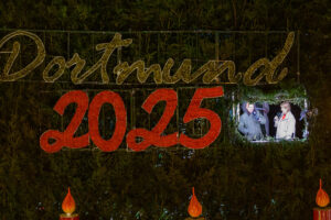 Um Punkt 18 Uhr läutete er die offizielle Eröffnung der Weihnachtsstadt mit einem Glöckchen ein und ließ zeitgleich den Weihnachtsbaum erleuchten. Anschließend untermalten Morgan Moody (Kammersänger des Dortmunder Theaters) und die United Harriet Colliery Band (TU Dortmund), die Lichtshow des 45-Meter-hohen Wahrzeichens musikalisch.