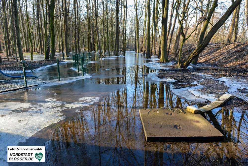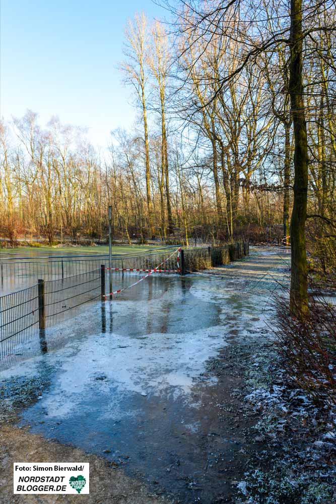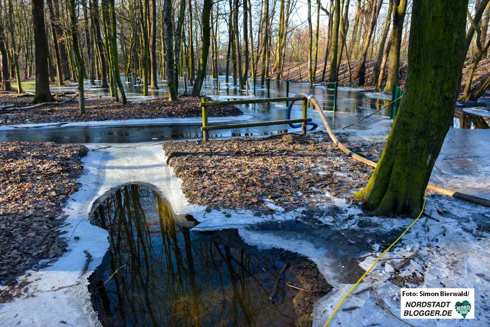 Die Geschäftsführerin sagt den Nordstadtbloggern, dass schon im vergangenen Jahr während mehrerer Ortstermine auch unter Beteiligung von Vertretern des Stahlunternehmens über ein neues Entwässerungssystem im Park gesprochen worden sei.