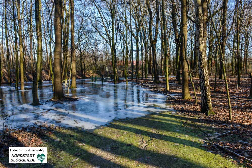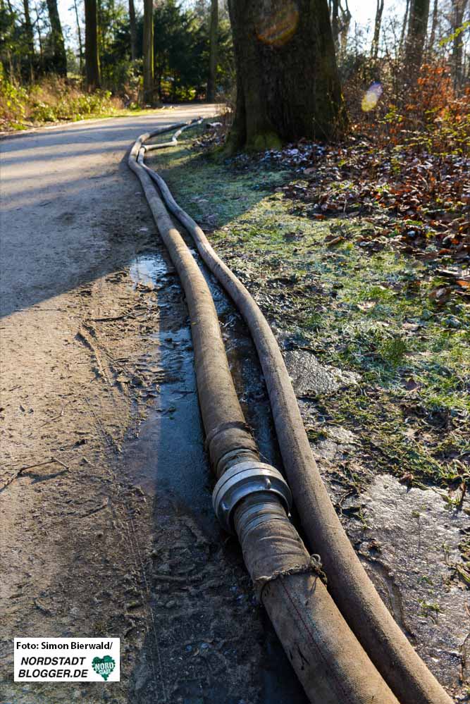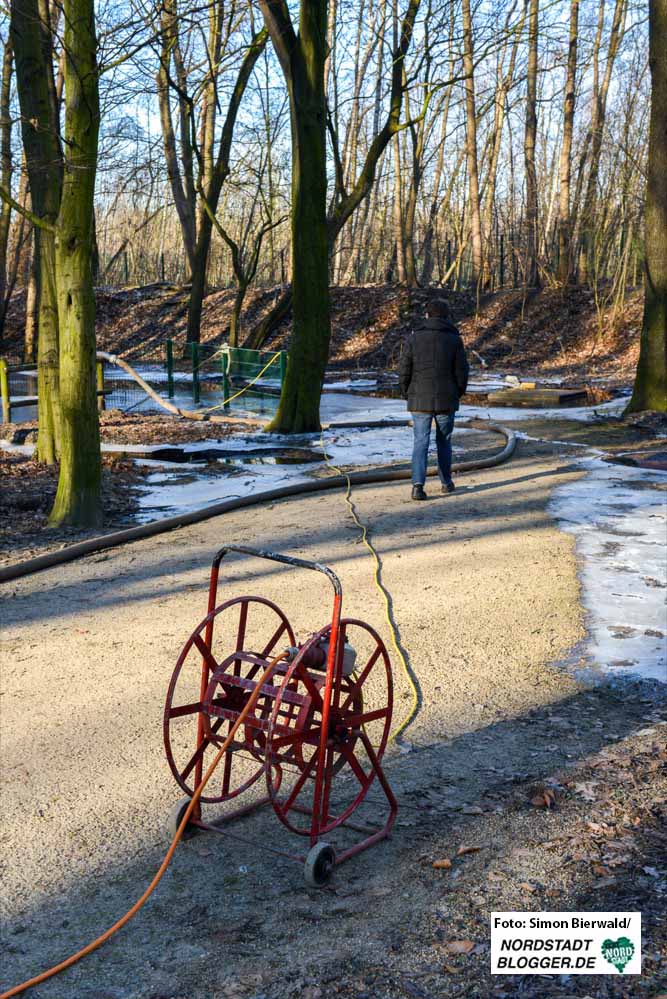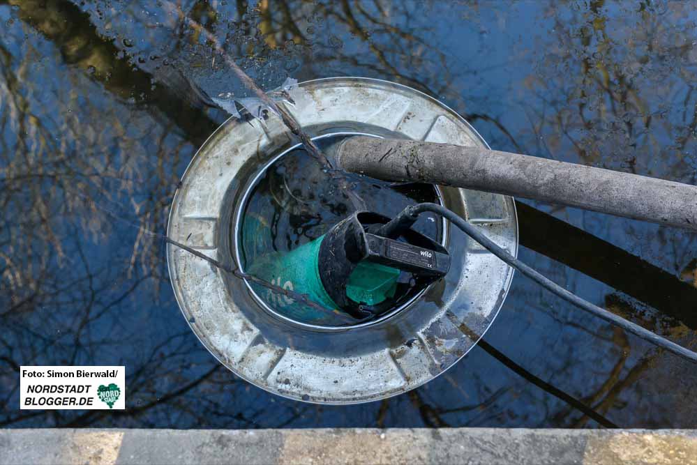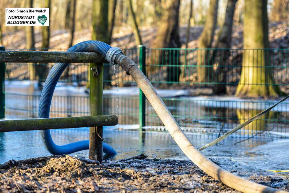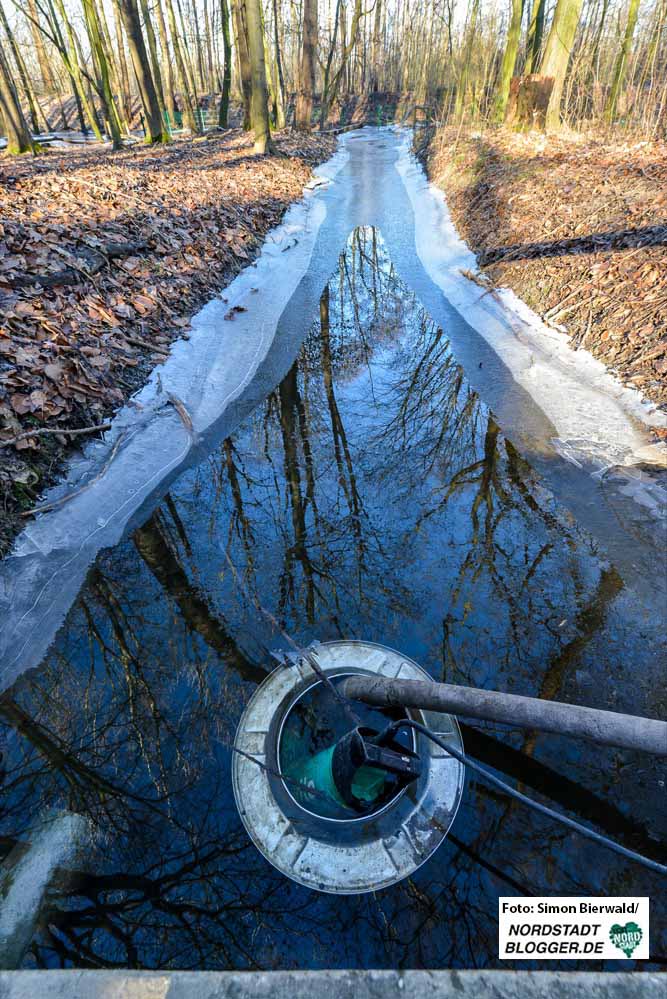 Das Wasser müsse von der tiefsten Stelle im Brügmanns Hölzchen an der Grenze zum ThyssenKrupp-Gelände bis zum Parkeingang, der um einiges höher liegt, geführt werden, da dort der größte Schacht vorhanden sei.