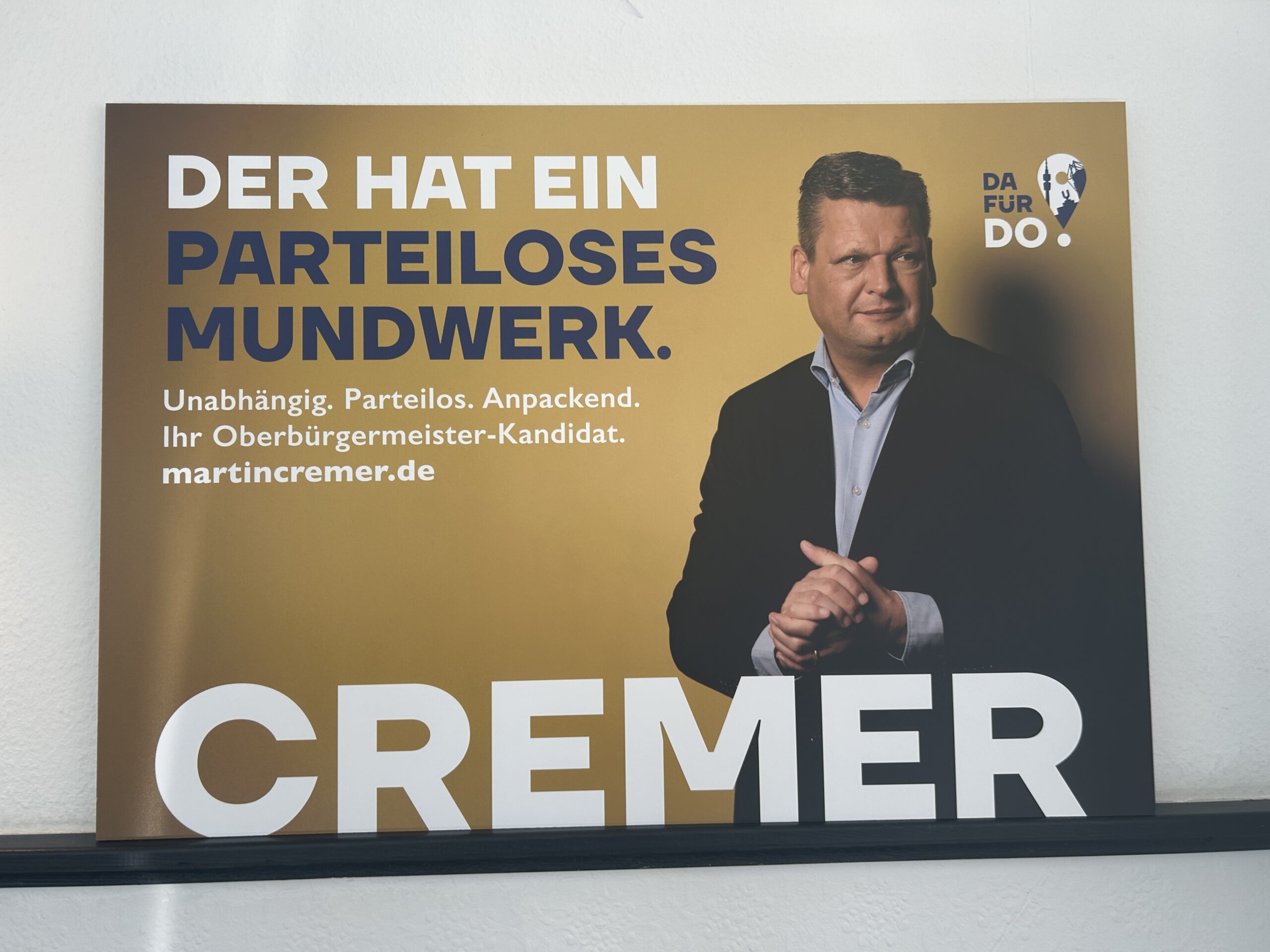 Wenn auch die diesjährige Kommunalwahl erst im September ist, bemüht sich Martin Cremer jetzt schon um seine Sichtbarkeit bei den Dortmunder:innen. Der 54-jährige Diplom-Kaufmann und Unternehmer kandidiert für das Amt des Oberbürgermeisters und ist damit der einzige parteilose Kandidat im Rennen. Eine Kampagne für seinen Wahlkampf in Dortmunder steht bereits in den Startlöchern.