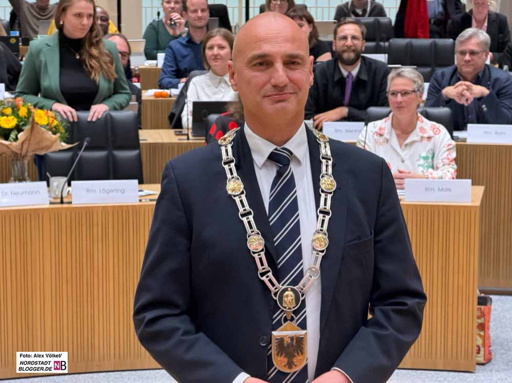 Alexander Kalouti (CDU) wurde bei der konstituierenden Ratssitzung offiziell in sein Amt eingeführt. In seiner Ansprache nach der Vereidigung betonte er die Themen, die ihm schon im Wahlkampf wichtig waren: Sicherheit und Ordnung, Kitas und Wirtschaft. Und einen Appell für gesellschaftlichen Zusammenhalt.
