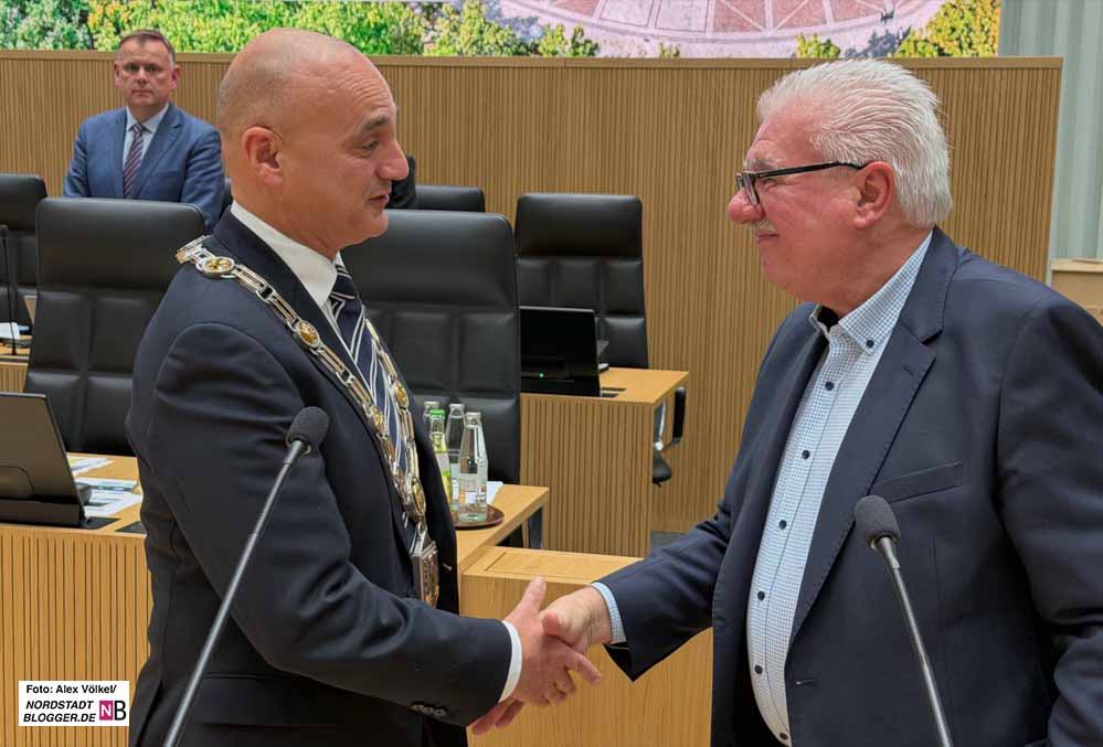 Danach gratulierten ihm alle Fraktionsvorsitzenden der fünf Fraktionen und die Mitglieder der vier Gruppen – dem AfD-Fraktionsvorsitzenden Heiner Garbe verweigerte er – anders als sein Amtsvorgänger Thomas Westphal – nicht den Handschlag, auch wenn seine Miene in diesem Moment versteinerte.