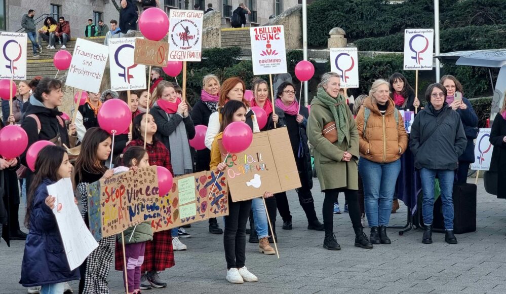 Seit 2013 ist für viele Menschen der Valentinstag nicht nur ein Tag der Liebenden, sondern auch ein Tag, an dem sie gegen die Gewalt an Frauen demonstrieren. Diese weltweit stattfindenden Aktionen stehen unter dem Motto „One Billion Rising” (Eine Milliarde erheben sich). Sie will darauf aufmerksam machen, dass jedes dritte Mädchen bzw. Frau schon Gewalterfahrungen machen musste – bezogen auf die Weltbevölkerung sind das eine Milliarde Mädchen und Frauen. Auch in Dortmund gab es eine Aktion.
