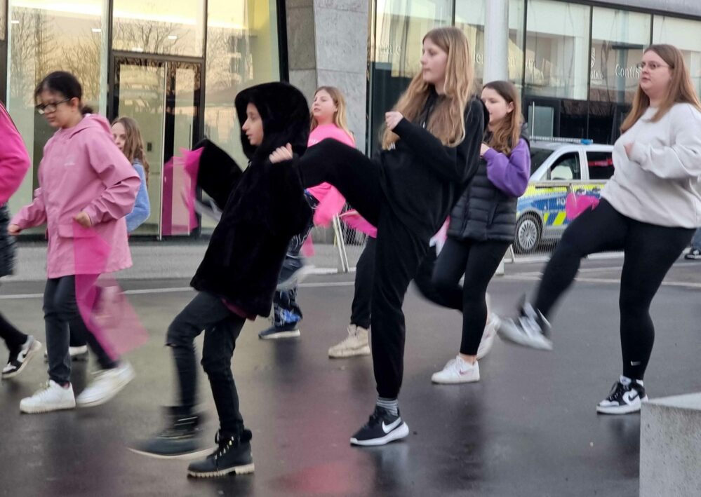 „Wir finden diese Demonstration so toll, einfach weil sie so besonders ist. Eine Demonstration in Form eines Flashmobs, das man zusammen mit Freude auf dieses ernste Thema eingehen kann“, erklärt Organisatorin Julia Bockrath. Anwesend waren unter anderem auch Kinder- und Jugendgruppen, Demonstrant:innen und einige Passant:innen, die engagiert mitgetanzt haben.