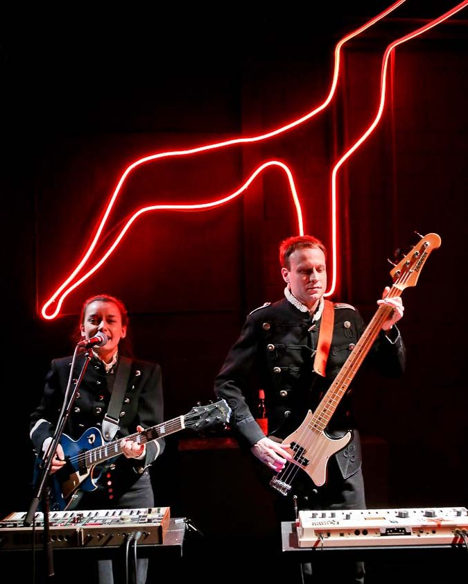 Das Duo aus der Dortmunder Nordstadt steht während den Vorstellungen mit zwei Synthesizern, einer MPC und einer Gitarre sowie einem Bass und den eigenen zwei Stimmen auf der Bühne. Sie schaffen damit den gesamten Sound des Stücks. „Wir nehmen einen Teil des Arrangements ein“ und „Die Musik ist wie ein Uhrwerk.“ erklären die beiden Musiker.