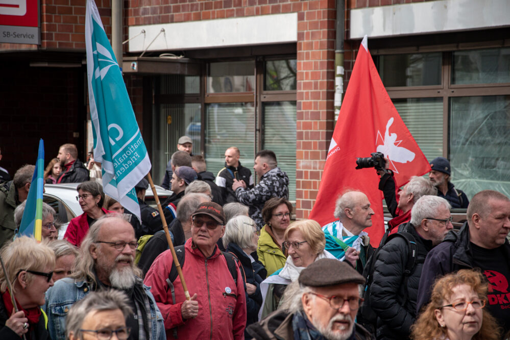 An der Demonstration nahmen verschiedene Gruppen teil. Fahnen der Partei „Die Linke“ waren in diesem Jahr nicht mehr zu sehen. Mit demonstrieren wollten in diesem Jahr auch Teile der Huckarder Coronademo-Szene. Auf der Kundgebung war keine größere Abgrenzung zu der Gruppe zu beobachten.