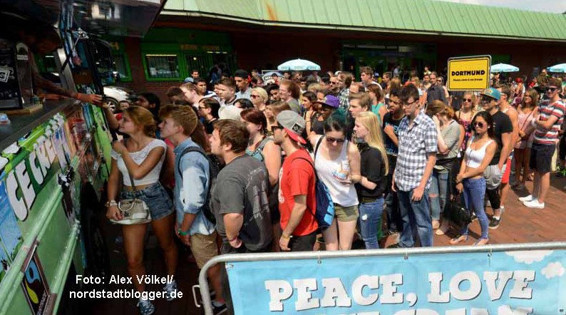Ein Zeichen für Frieden, fairen Handel und natürlich auch eine „klitzekleine“ Portion Produktmarketing erlebt die Nordstadt gestern vor dem Dietrich-Keuning-Haus: Die „Ben & Jerry’s Taste & Tunes Tour“ war in Dortmund zu Gast.