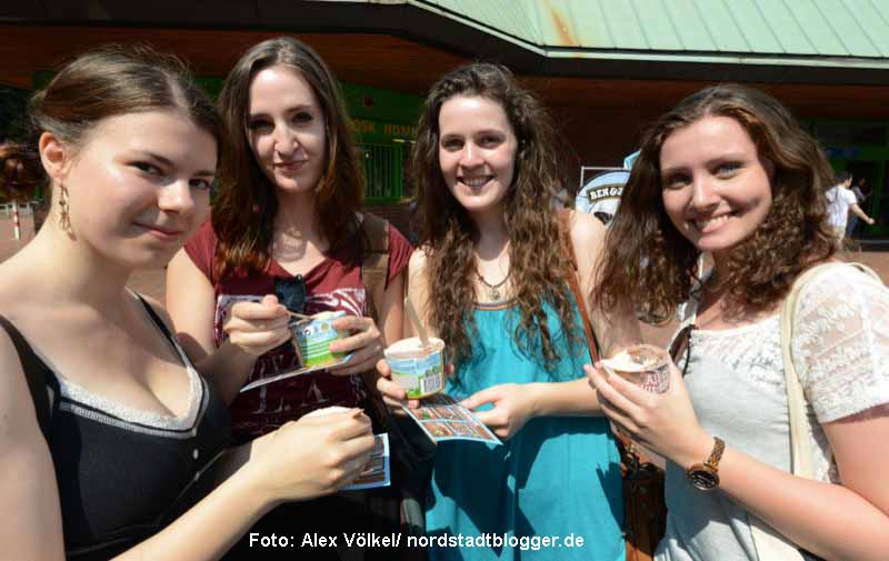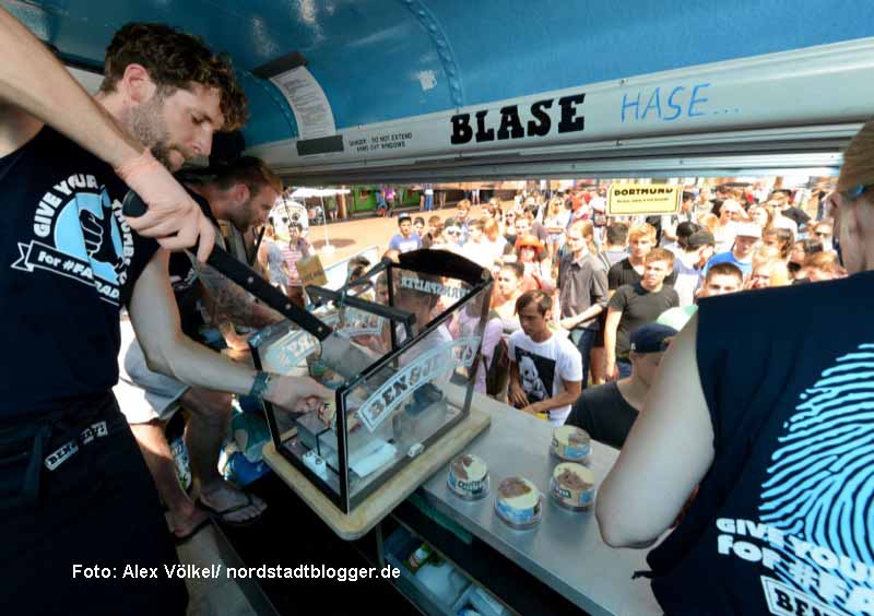 Dadurch ging es zwar schneller bei der Ausgabe – dennoch kam es zu lange Wartezeiten – mancher machte da in der sengenden Sonne frühzeitig schlapp, bevor das kühle Eis erreicht war. Denn mehrere tausend Gäste kamen in die Nordstadt.