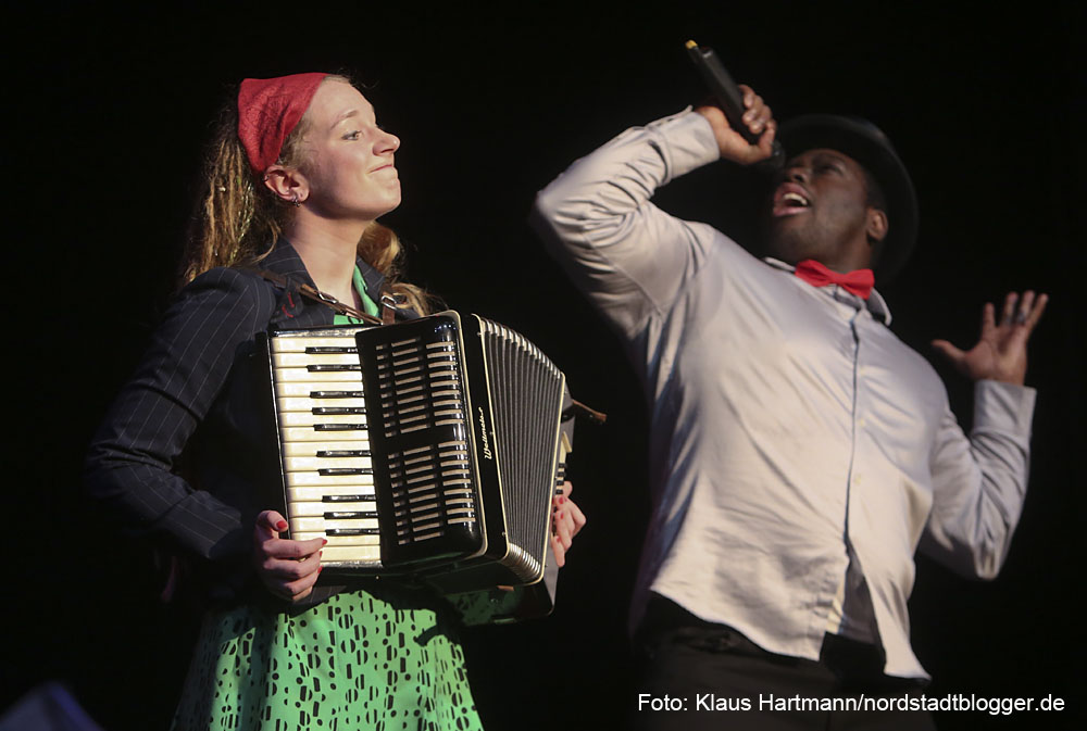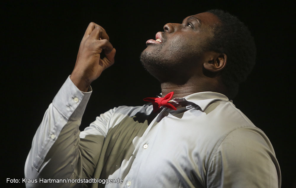 Ansonsten präsentiert sich der Weltuntergang als mal mehr mal weniger chaotisches Nummernkabarett, in dem ein muskulöser „Polizist“ erfolglos Ordnung herbeiregeln will, in dem früh ein grauer Kuschelbär verlorengeht und in dem etliche Mitwirkende ihre bejubelten solistischen Auftritte haben, Homeboys und Homegirls offenbar, bei denen das Publikum vorher schon weiß, worauf es sich freuen kann.