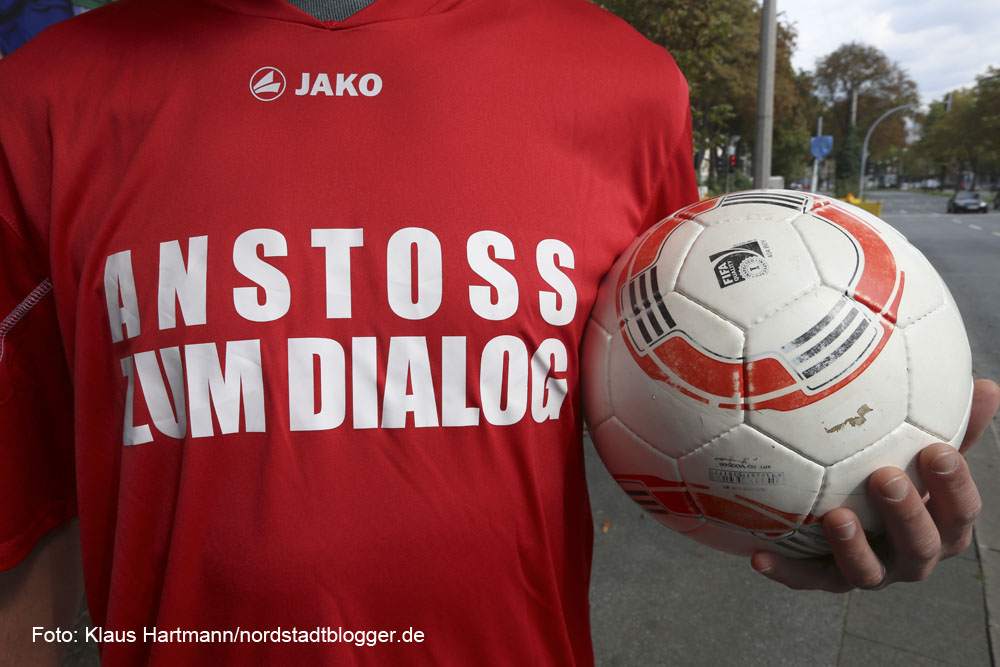 Jetzt wirbt auch eine Plakatwand am Ostwall für das Fußballturnier der Religionen im Hoeschpark am 14. September. Vorbeifahrende Autofahrer und Flaneure auf den Bürgersteigen sollen so auf das spezielle Turnier, das zum neunten Mal stattfindet, aufmerksam gemacht werden.