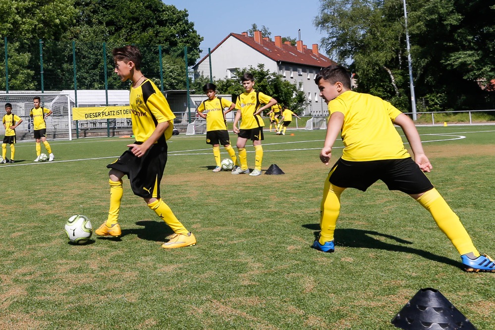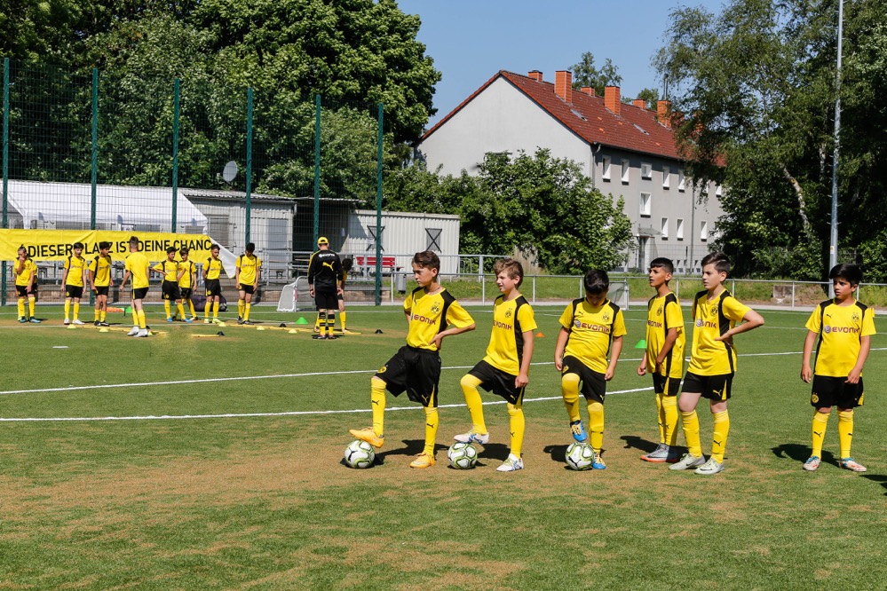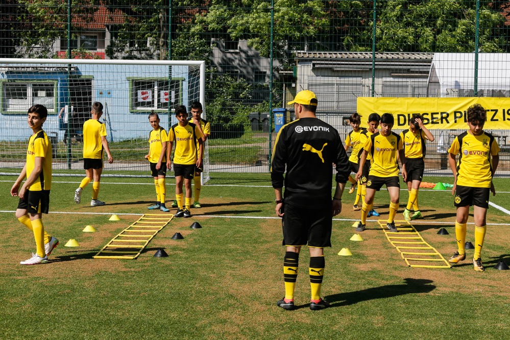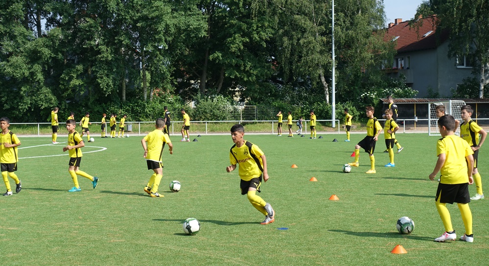 Auf dem neuen Kunstrasenplatz „ZumBärenkamp“, den sich die Vereine „Ay Yildiz Derne“ und „SuS Derne“ teilen, fand das Training täglich zwischen 9 und 15 Uhr statt. Ehrenamtliche Helfer der beiden Vereine unterstützten die Profi-Trainer vom BVB, während Unity Media das Trainingscamp finanziell gesponsort hat.