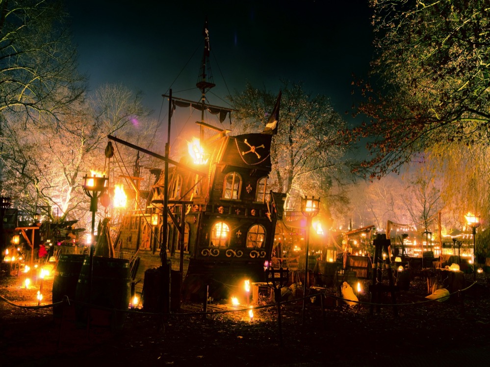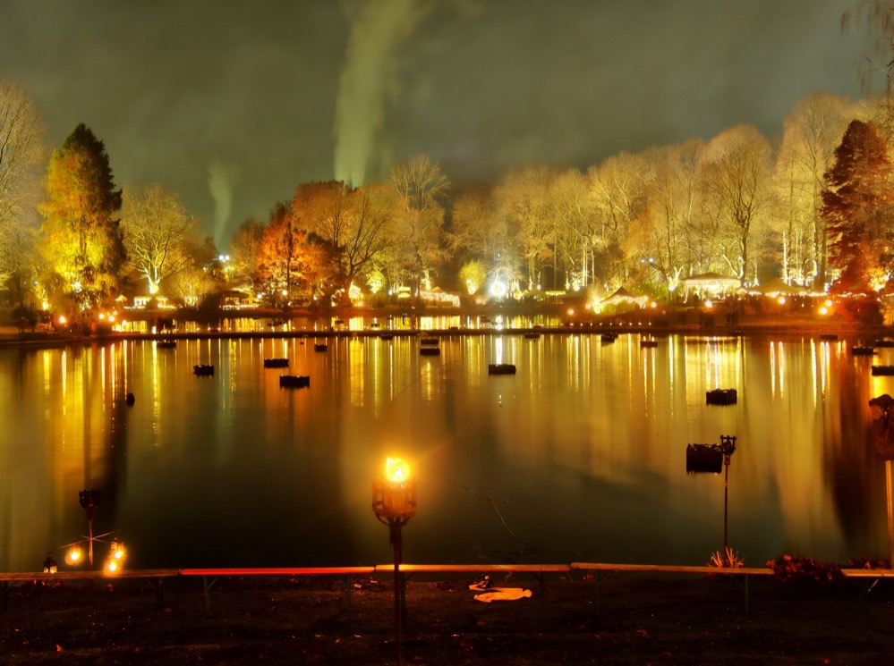 1.600 gegen die Baumkronen gerichtete Flutlichtstrahler, Leuchtnetze- und schläuche und mehrere tausend Feuertöpfe, Flammschalen, Fackeln, Kerzen, Großfeuer sowie die Lichter der Marktstände tauchen den Fredenbaumpark in ein zauberhaftes Licht.