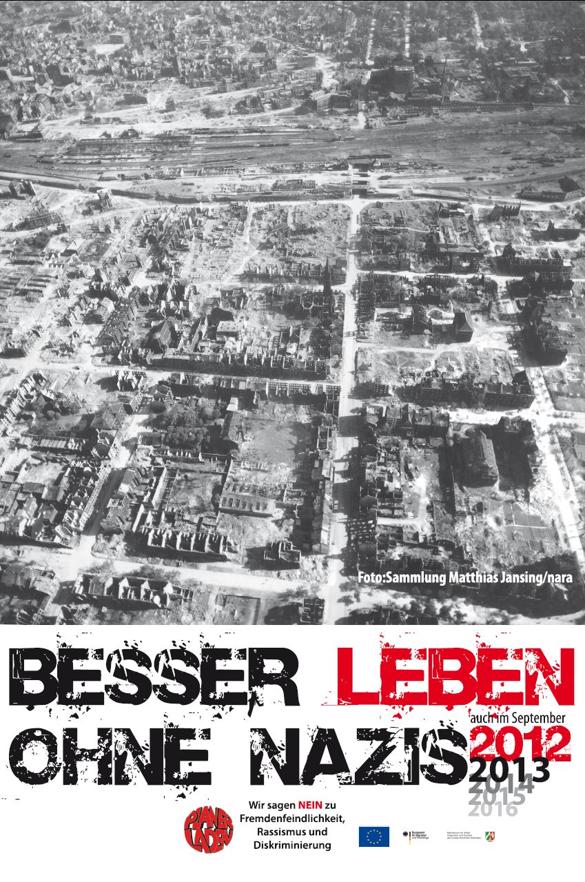 Anlässlich der Aufmärsche der Rechten am Antikriegstag 2012 entwickelte die Integrationsagentur des Planerladen e.V. drei Plakatmotive mit dem Motto „Besser leben ohne Nazis/ schöner wohnen ohne Nazis – auch 2012, 2013, …“.