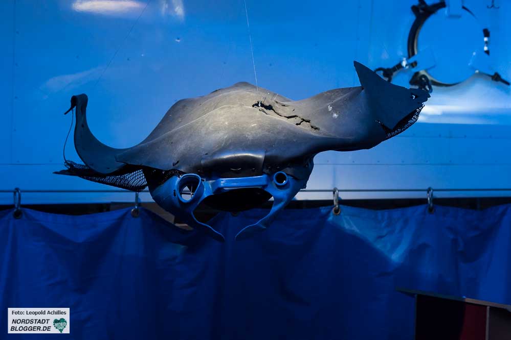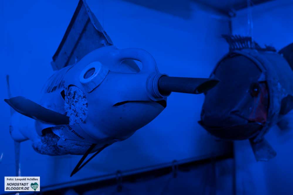 Plastik gibt es hier an Board auch viel – in Form von Quallen und anderen Meerestieren. Greenpeace und der Verein Jordsand haben nämlich an der Nordseeküste Plastikmüll gesammelt, aus dem die Künstlerin Antje Truelsen Upcycling-Kunstwerke geschaffen hat.
