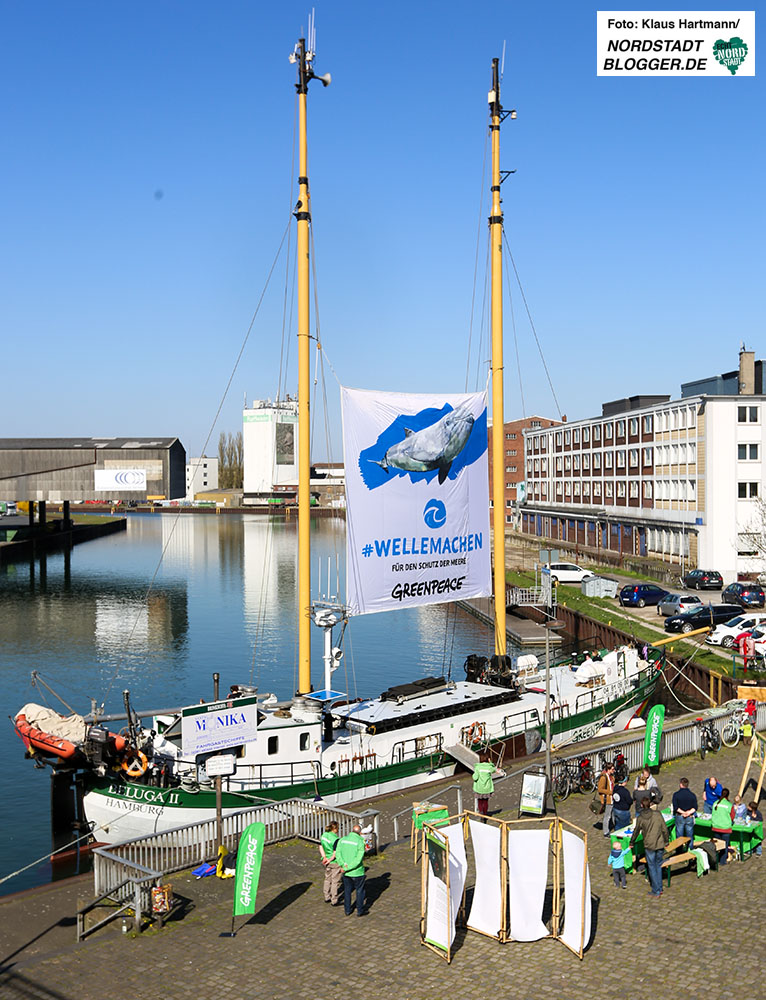 Bei strahlendem Wetter legte das Greenpeace-Boot Beluga II im Dortmunder Hafen an und lud zur Besichtigung ein. Mit der fahrenden Ausstellung möchte Greenpeace auf die Verschmutzung der Meere durch Plastikabfälle aufmerksam machen.