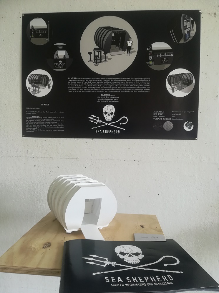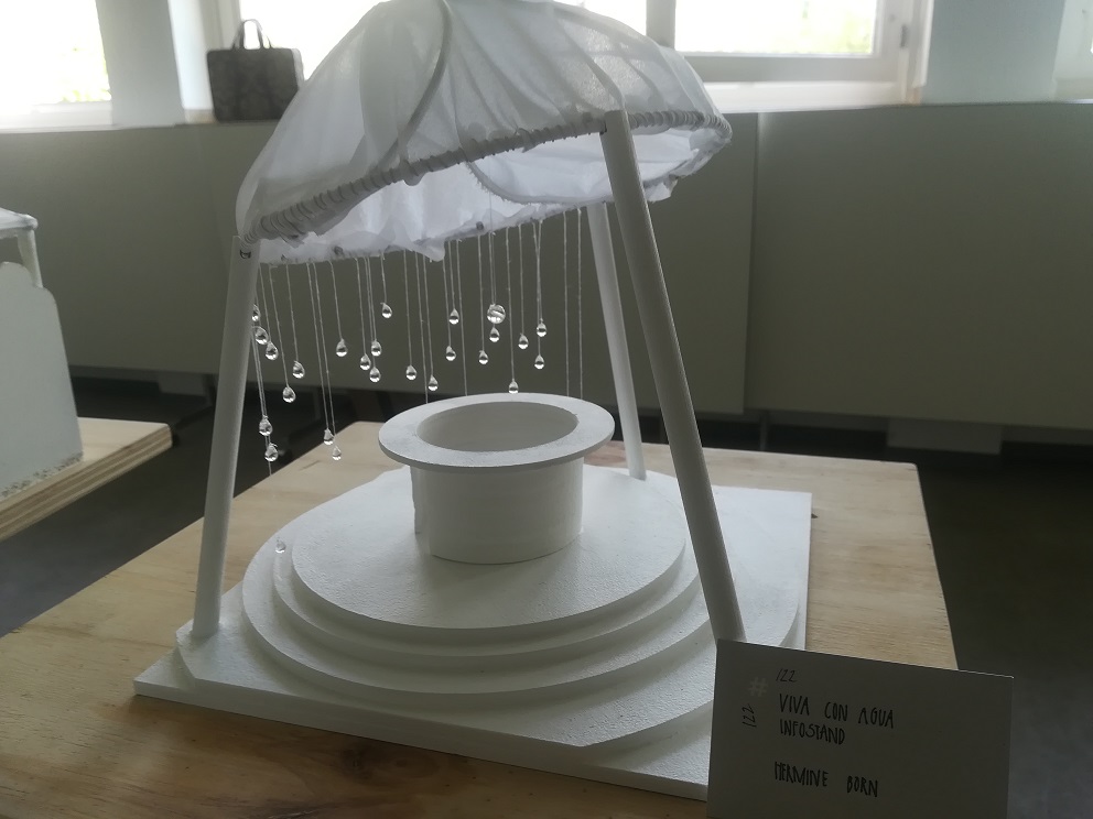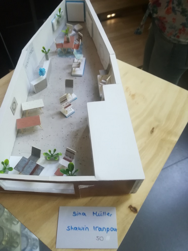 Eine Szenographie Arbeit ist im Raum 130 zu sehen, gegenüber im Raum 127 sind Arbeiten zu sehen, welche sich mit Ausstellungs- und Informationspavillion-Gestaltungen beschäftigen und zugleich einen Eindruck vermitteln warum Szenographie fachübergreifend gelehrt wird. In der Aula der Fachhochschule werden Modelle zu Raumgestaltungsarbeiten zu einer vorgegebenen Verkaufsräumlichkeit präsentiert.