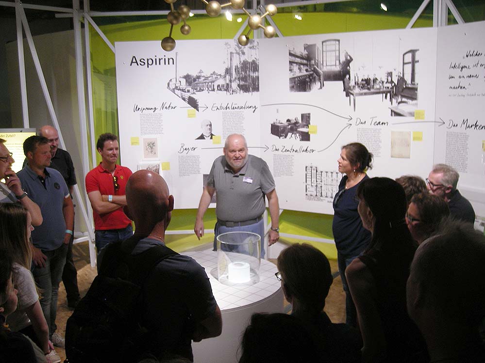Hier wurde die industrielle Geschichte der Chemie aufgearbeitet. Nach einem kurzen einleitenden Film wurden die ZuschauerInnen mit viel Humor durch die Ausstellung geführt. BesucherInnen erwartete eine spannende und informative Reise durch die Geschichte von Chemie, Pharmazie und Medizin.