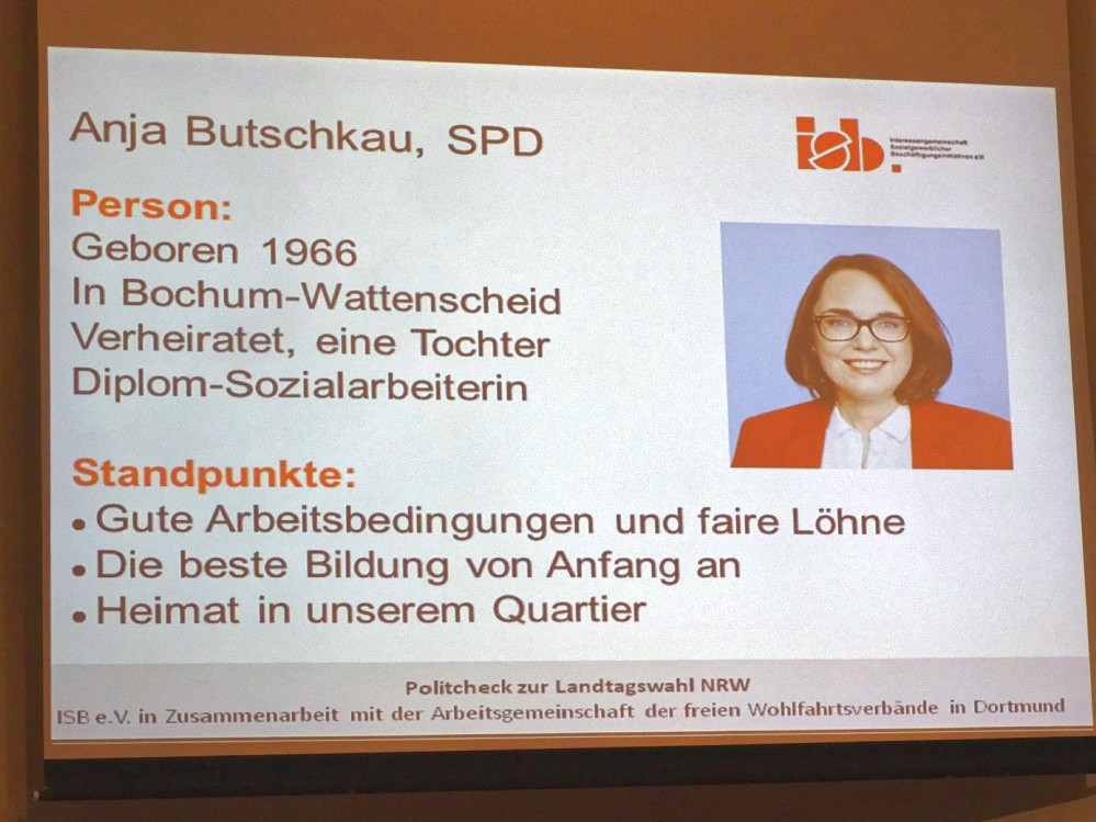 SPD-Kandidatin Anja Butschkau nimmt als erste diese Frage auf und erweitert das Problem: „Das Problem der Kinderarmut liegt mir sehr am Herzen, und die liegt nun mal in der Familie. Ohne Arbeit für die Eltern fehlt es an Einkommen, droht Armut. Aber nicht nur deshalb brauchen wir neue Jobs, denn Arbeit hat auch was mit Würde zu tun. Wir fordern einen sozial geförderten Arbeitsmarkt anstatt der bisherigen befristeten Maßnahmen.“