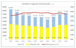 Die Kriminalität in Dortmund nimmt wieder zu: Nachdem die Stadt lange von sinkenden Deliktzahlen profitierte, meldete die Polizei Dortmund für das Jahr 2024 insgesamt 73.209 registrierte Straftaten. Das bedeutet einen Anstieg um 4,23 Prozent gegenüber … Polizeiliche Kriminalstatistik: Weiterhin hohe Aufklärungsquote bei der Polizei Dortmund weiterlesen