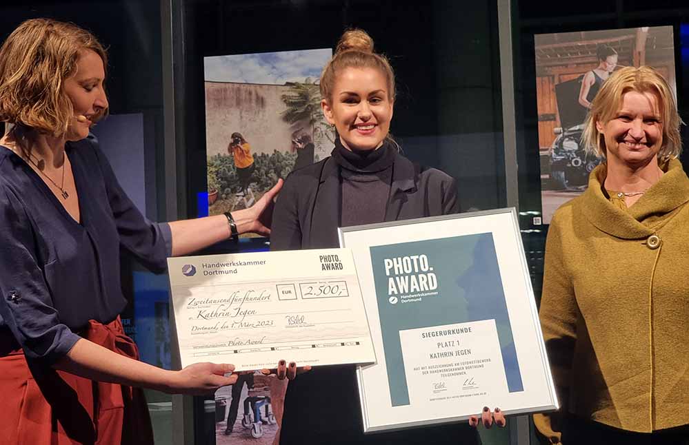 Die HWK Dortmund stellt die besten Fotos ab 6. März 2024 aus. Die drei Finalist*innen werden bei einer Vernissage ausgezeichnet und erhalten ein Preisgeld je nach Platzierung. Einen Sonderpreis gibt es außerdem für eine Einsendung zum Thema Frauen und Diversity.