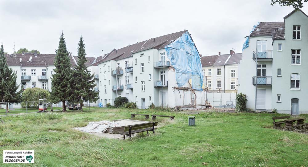 Blick aus dem Innenhof auf die entstandene Lücke in der Häuserreihe in Hörde. Foto: Leopold Achilles