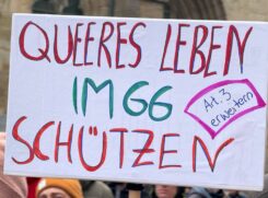 Wir brauchen Gesetze, die uns wirksam vor staatlichen und privaten Übergriffen schützen. Deswegen muss das Selbstbestimmungsgesetz erhalten und nachgebessert werden. Deswegen muss das neue Gewaltschutzgesetz so erweitert werden, dass auch trans* und nichtbinäre Menschen geschützt sind. Deswegen muss das Familienrecht endlich reformiert werden, damit lesbische Mütter von Anfang an die rechtlichen Eltern ihrer Kinder sind.
