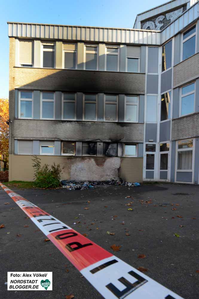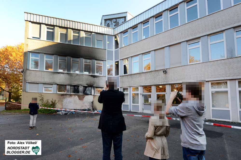 Haben sich der oder die Täter beim Gebäude geirrt oder hat der Vorfall in der Halloween-Nacht nichts mit den Flüchtlingen in unmittelbarer Nähe zu tun? Diese Frage stellen sich viele Menschen, die am Sonntag auf dem Schulhof standen und sich die Folgen des Brandes ansahen.