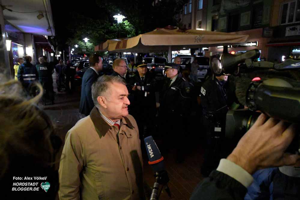 Erneut eine Razzia gegen Clan-Kriminalität: Mit vereinten Kräften und unter den wachsamen Augen von NRW-Innenminister Herbert Reul (CDU) sind am Freitagabend Polizei, Zoll, Steuerfahndung, mehrere Stadtämter und die Bundespolizei auf Kontrolltour gegangen und haben in der Nordstadt Shisha-Bars, Gaststätten und Spielhallen kontrolliert. Aber auch zumeist PS-starke Fahrzeuge sowie mögliche Drogendealer in Straßen und Parks nahmen die rund 150 Einsatzkräfte in den Blick, um Druck auf Kriminelle und insbesondere Clans auszuüben.