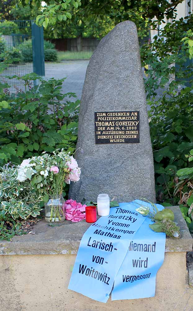Als der Polizeikommissar Thomas Goretzky ausstieg, eröffnete der Fahrer des BMW ohne jegliche Vorwarnung das Feuer auf den Beamten und traf ihn tödlich, seine Kollegin Polizeimeisterin Nicole Hartmann wurde in den Oberschenkel getroffen und überlebte schwer verletzt.