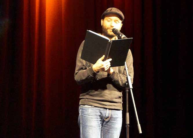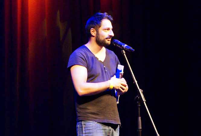 Er ist einer der bekanntesten Poetry-Slammer Deutschlands und Organisator und Moderator der gestrigen Benefiz-Show im Dortmunder Fritz Henßler Haus.