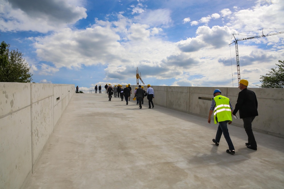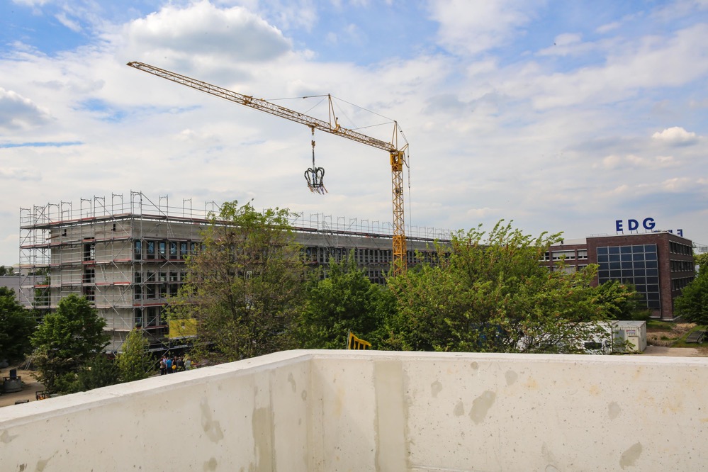 Wir verbinden das Richtfest mit einem herzlichen Dank an das ausführende Bauunternehmen Leonhard Weiss, alle übrigen an Planung und Bau beteiligten Unternehmen und unsere Mitarbeiterinnen und Mitarbeiter, die mit Energie und Einsatz an der Realisation dieses Vorzeigeprojektes arbeiten“, lobten die Auftraggeber.