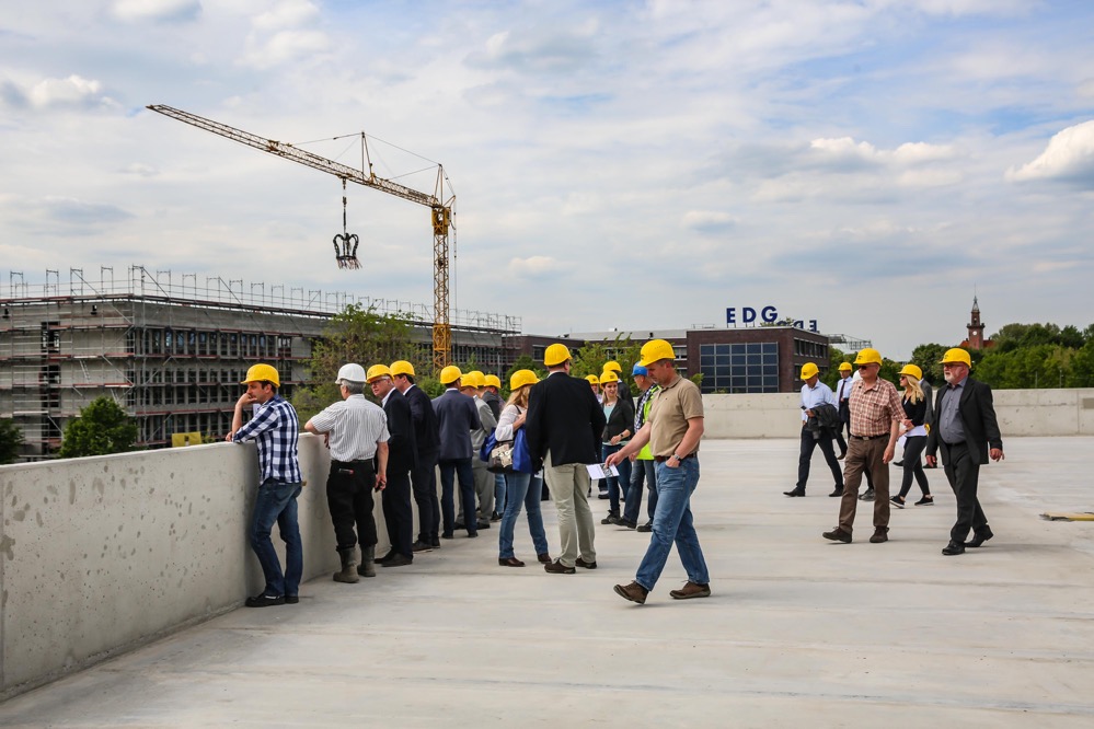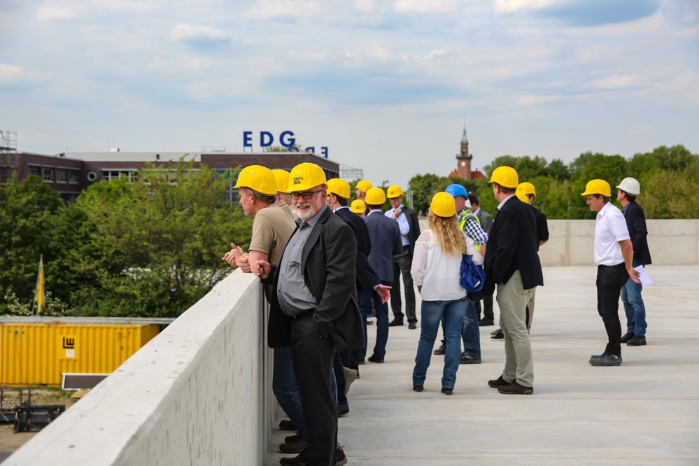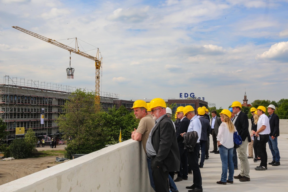 Oberbürgermeister Ullrich Sierau, der mit Vertretern des ausführenden Bauunternehmens Leonhard Weiss, dem EDG-Aufsichtsratsvorsitzenden Norbert Schilff und den Geschäftsführern der EDG Klaus Niesmann, Frank Hengstenberg und Wolfgang Birk dem Richtfest beiwohnte, lobte die Synergien, die durch das Vorhaben entstehen. „Das spart Flächen und Geld“, so Sierau – es sei ein „Vorzeigeobjekt“.