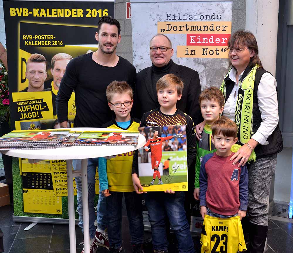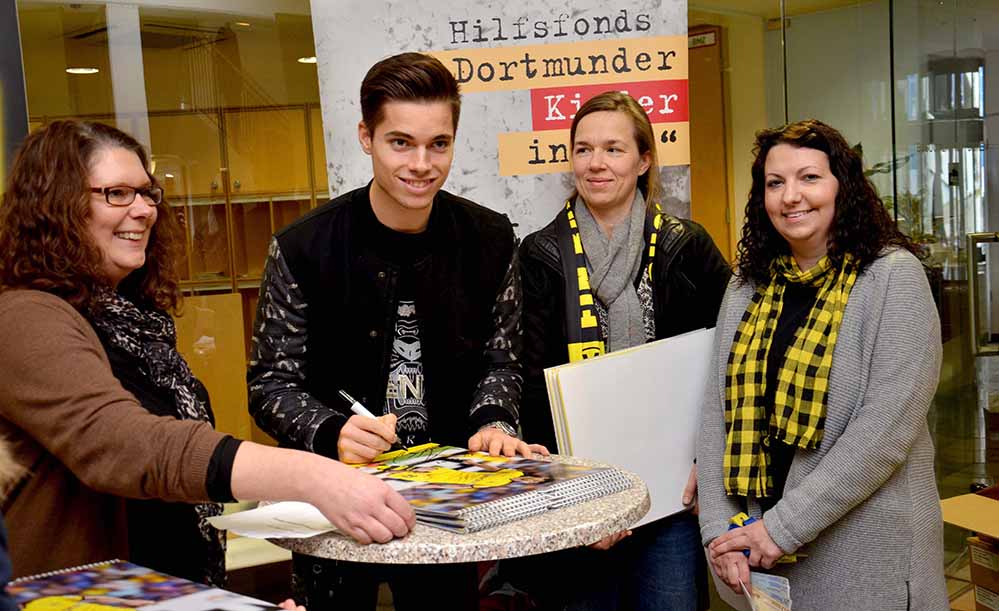 So kam in einer Stunde durch 230 verkaufte Kalender noch einmal 1.150 Euro als Spende für den Hilfsfonds „Dortmunder Kinder in Not“ zusammen. Insgesamt wurden von Julian Weigl und Roman Bürki 551 Kalender unterschrieben, was einer Spende von 2.755 Euro für die Hilfe zugunsten bedürftiger Kinder entspricht.