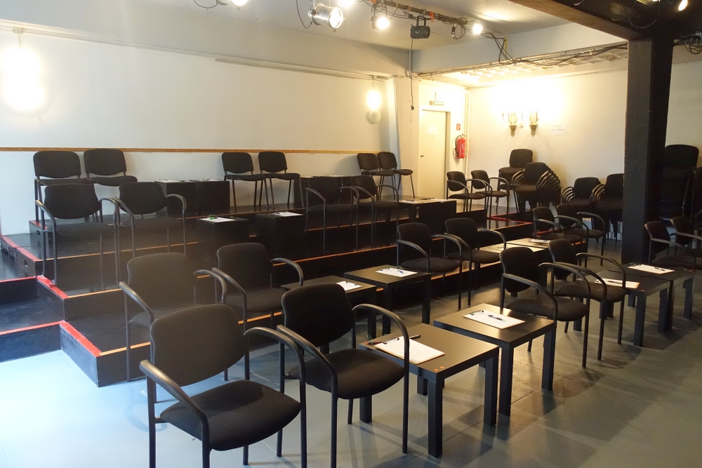 Zusätzlich musste der Abstand zwischen erster Reihe und Bühne auf drei Meter verlängert sowie die Sitzplätze des Theaters von ursprünglich 74 auf 30 reduziert werden, was praktisch eine Halbierung des Umsatzes ist. Hinzu kommt noch ein separater Ausgang, der für die Besucher*innen geschafft wurde. Dieser Ausgang ist der Zugang der Schauspieler*innen auf die Bühne – also quasi der Backstage-Bereich.