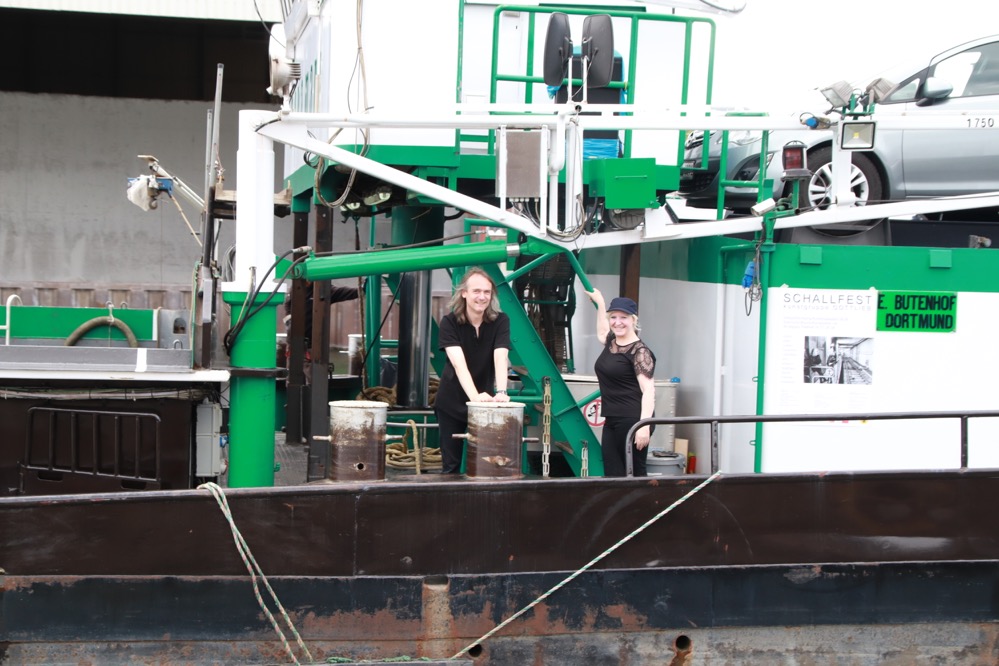 Am Dienstag (14. August 2018) betraten die KünstlerInnen das Frachtschiff MS Bayerischer Wald im Dortmunder Kohlenhafen. Gemeinsam mit dem Team um Schiffseigner Eberhard Butenhof und Steuerfrau Kerstin Weiß werden sie die Kompositionen mittels einer an Bord befestigten 1000-Watt Box aus dem Dortmunder Hafen über das Ruhrgebiet hinaus in europäische Gewässer tragen.