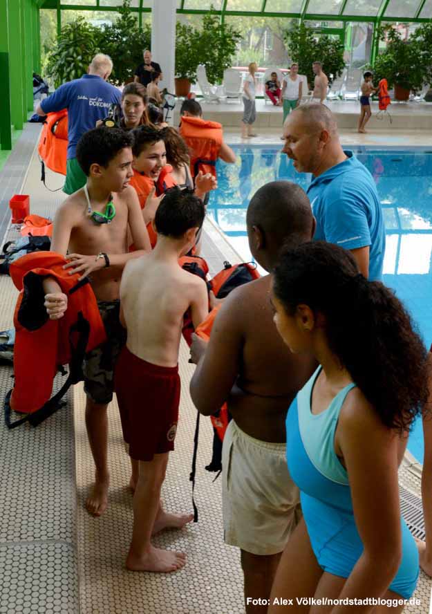 Das Kenternlernen steht am ersten Tag im Nordbad im Mittelpunkt
