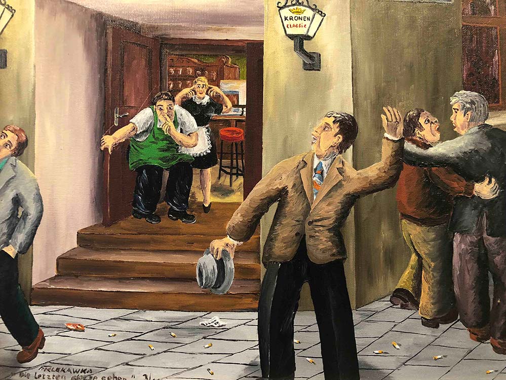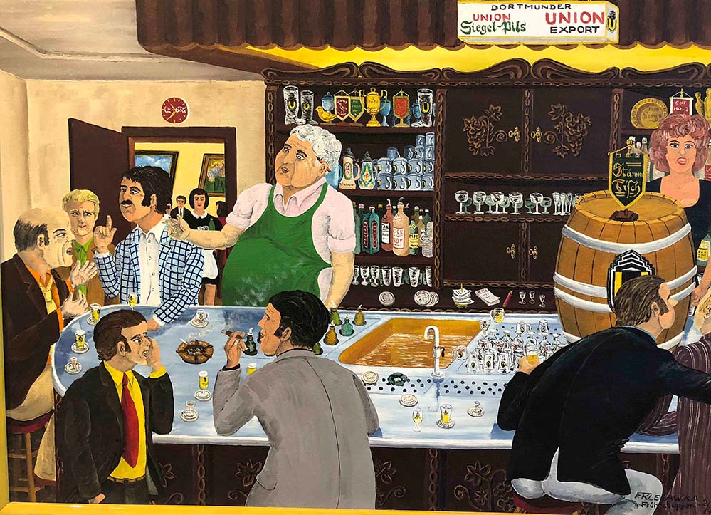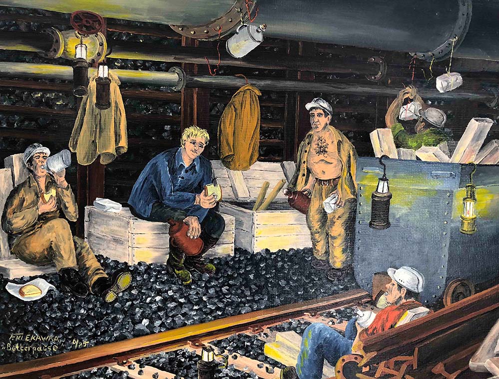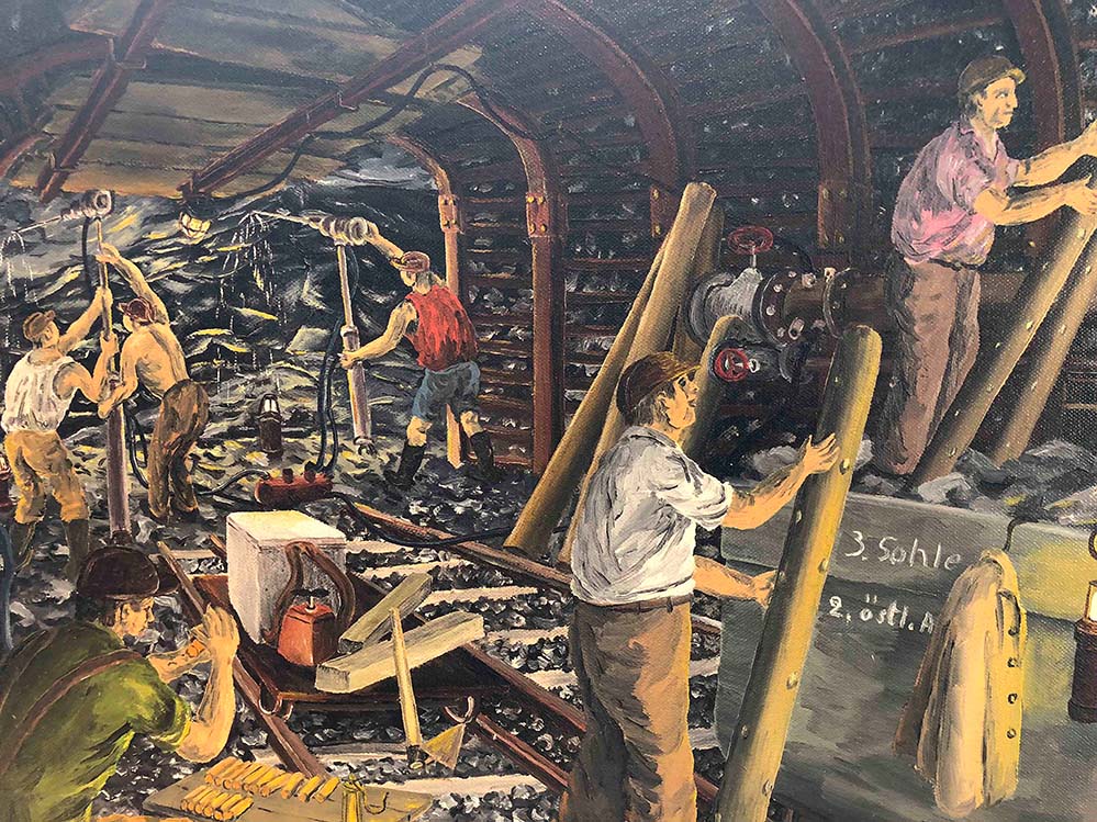 Mit den Pinseln hielt Franz Klekawka Freizeit- und Alltagsmenschen fest. Erinnerungen an Ausflüge, Prozessionen, auch ganz viele lustige Begebenheiten aus dem (einfachen) Leben. Ebenso dazu gehören Erinnerungen an seine Kindheit und Jugend in der Zechenkolonie Schüren.
