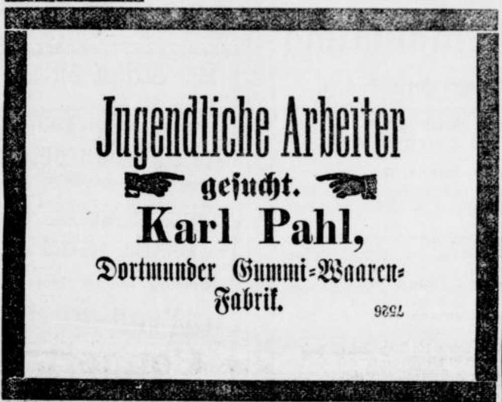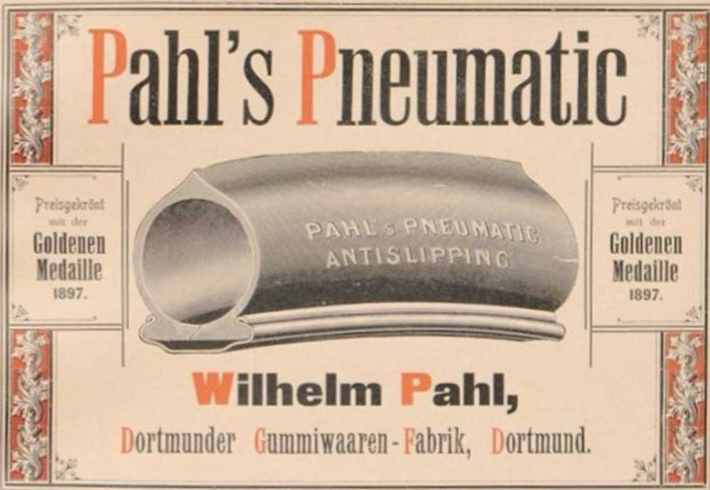 Schon bald setzte ein wahrer Boom ein zur Herstellung solcher Reifen, die immer weiter verbessert wurden. Federführend in Deutschland war eine Kautschuk-Fabrik in Hannover, die Continental, noch heute ein wichtiger Reifenhersteller. Wie in einer Reihe anderer Städte, stieg auch ein Dortmunder Unternehmen in diesen expandierenden Markt ein: die „Gummiwarenfabrik W. Pahl“. Gegründet 1863 von Karl Pahl, spezialisiert auf technische Gummiwaren und Baumwolltreibriemen für Fabriken.
