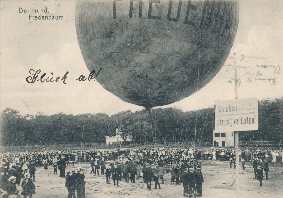 Aus Anlass eines Volksfestes am Fredenbaum wurde im Sommer 1907 eine Ballon-Wettfahrt ausgerichtet. Dabei musste ein bestimmtes Ziel angesteuert werden. Sieger war, wer dem Ziel – der Stadt Lünen – am nächsten kam.