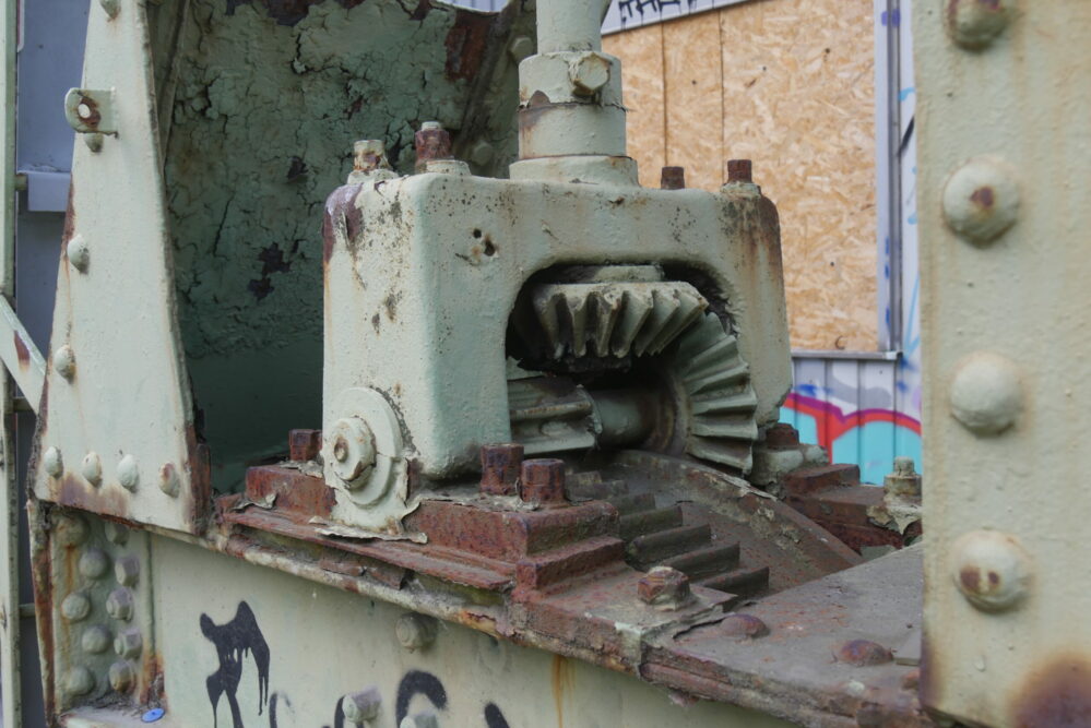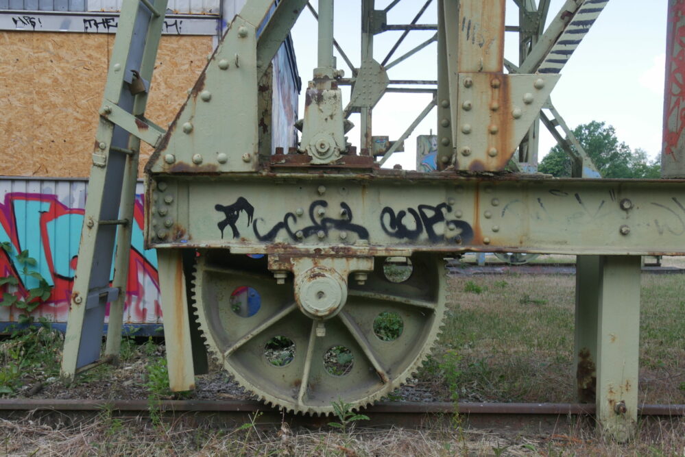Seit dem Umsetzen schenkte man den Kranen wenig Beachtung. Von der Kanalbrücke aus war zu erkennen, wie sich im Laufe der Jahre der Zustand der Hafenkrane stetig verschlechterte.