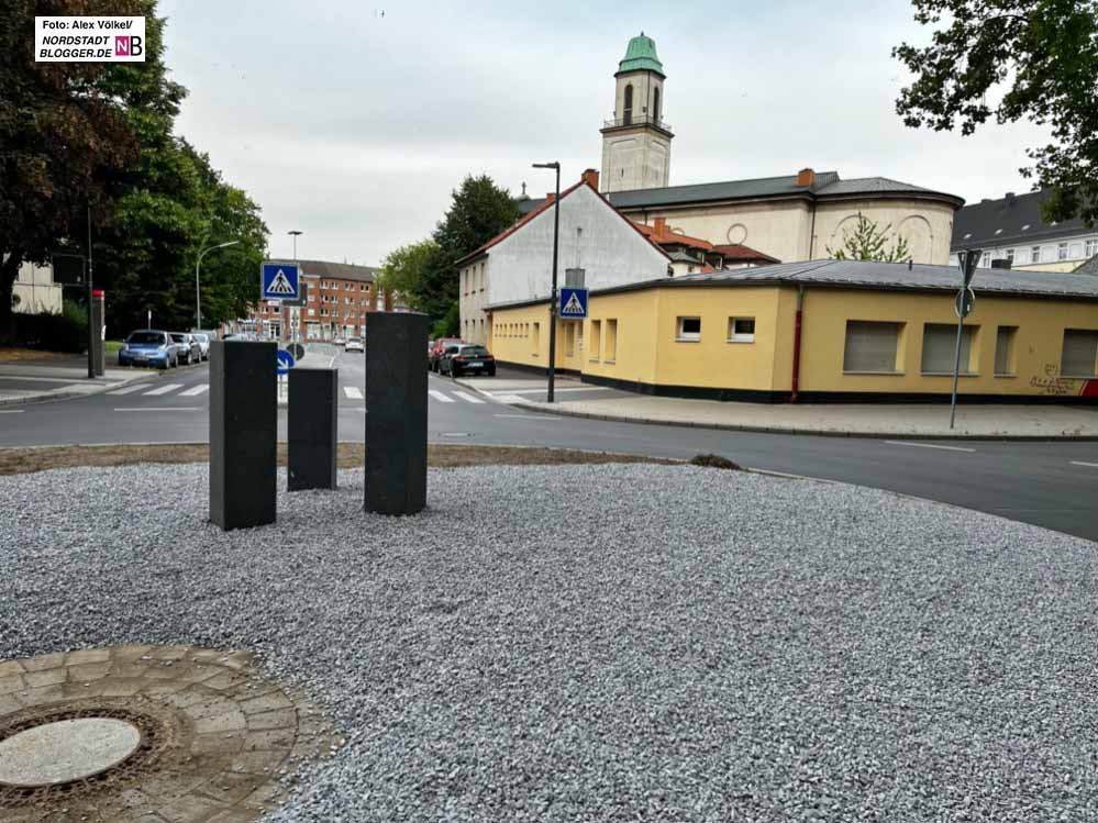 Zwischenzeitlich wurden drei kleine Stelen auf der Mittelinsel aufgestellt. „Ist das Kunst oder kann das weg?“ lästerte eine Anwohnerin. „Vielleicht sind das Grabsteine für die versenkten Steuermillionen“, kommentierte ein anderer.