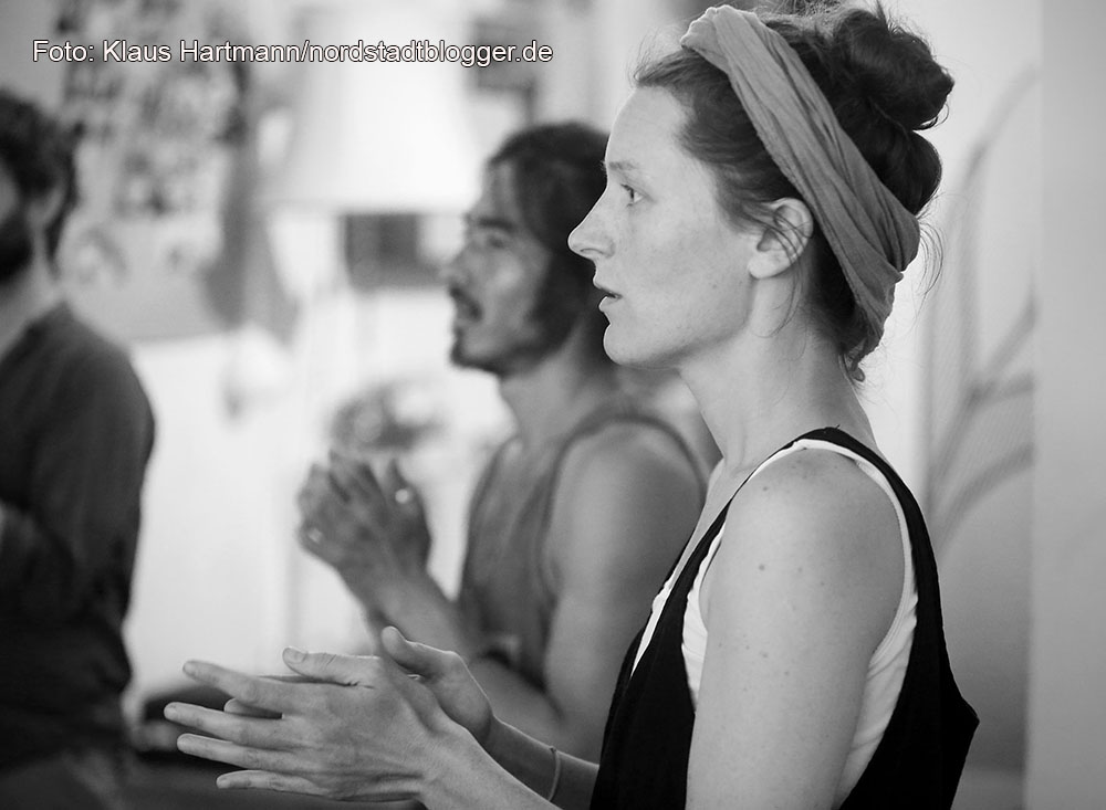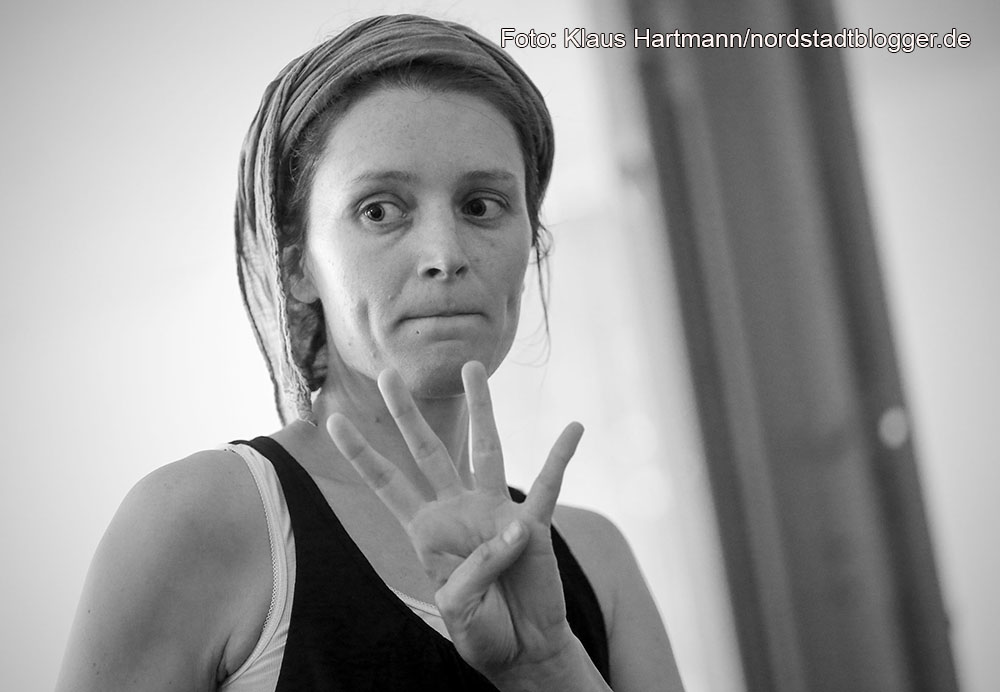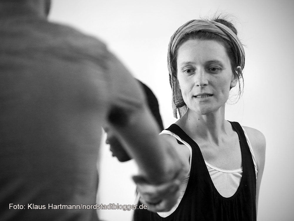 Bei der Akquise der Performer half Anna Buchta. Die Sozialpädagogin und Theaterpädagogin arbeitet bei dem Beschäftigungsprojekt Grünbau, dass in der Dortmunder Nordstadt beheimatet ist. Zusammen mit Emilia Hagelganz und Lena Tempich betreut sie die Proben.
