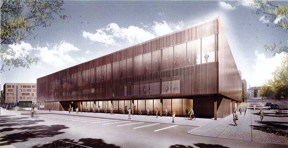 Für die entfallenden Stellplätze auf der bisher als Parkplatz genutzten Fläche unweit des FZW ist eine Parkgarage mit ca. 450 Auto- und 110 Fahrradstellplätzen vorgesehen, berichtet Planungsdezernent Ludger Wilde. Um eine für diese besondere Bauaufgabe optimale architektonische Lösung und einen geeigneten Planer für diese für die Dortmunder Sportszenerie bedeutsame Bauaufgabe zu finden, wurde ein Wettbewerb mit 20 Teilnehmer*innen nach den Richtlinien für Planungswettbewerbe ausgelobt.