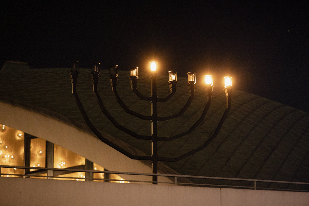 Im Anschluss an seine Rede wandte sich Novikov der großen Menora zu, einem siebenarmigen Leuchter, mit dem im Judentum dem Sieg über die Hellener im antiken Judäa gedacht wird. Während Chanukka wird jeden Tag eine weitere Kerze entzündet.