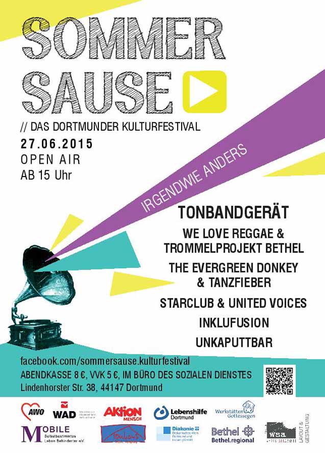 Auf dem Gelände der AWO-Werkstätten , Lindenhorster Str. 38, findet am Samstag, 27. Juni 2015, ab 15 Uhr bereits zum 8. Mal die Sommersause“ statt.  Headliner der Neuauflage inklusiven Kulturfestivals ist die Hamburger Band  „Tonbandgerät“.