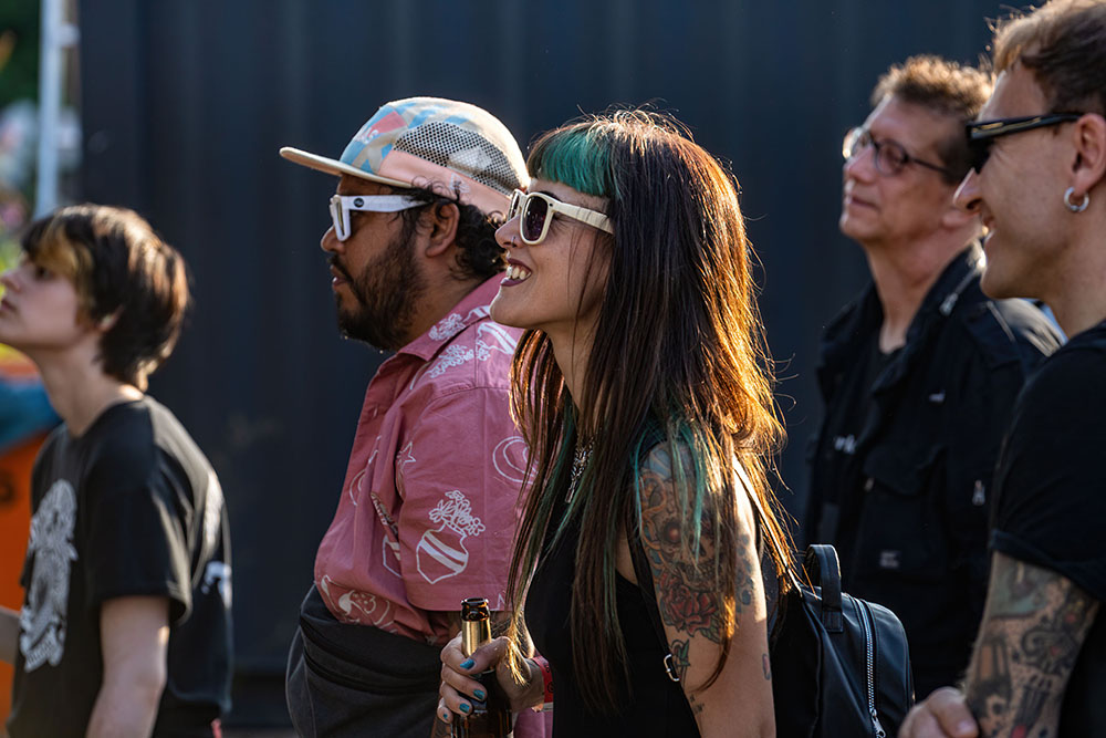 Auch Mareike, die das Festival bereits länger im Blick hatte und bei ‚Rausgegangen‘ darüber gelesen hatte, ist begeistert. „Die Location ist einfach perfekt, es sieht total cool aus hier.“ Für Mareike ist das Sonic Waves der einzige Festivalbesuch in diesem Jahr, den sie bewusst so gewählt hat. „Ich höre gerne Punkrock, und das hier ist genau mein Ding.“ Besonders die Band Metdog aus Australien habe sie beeindruckt.